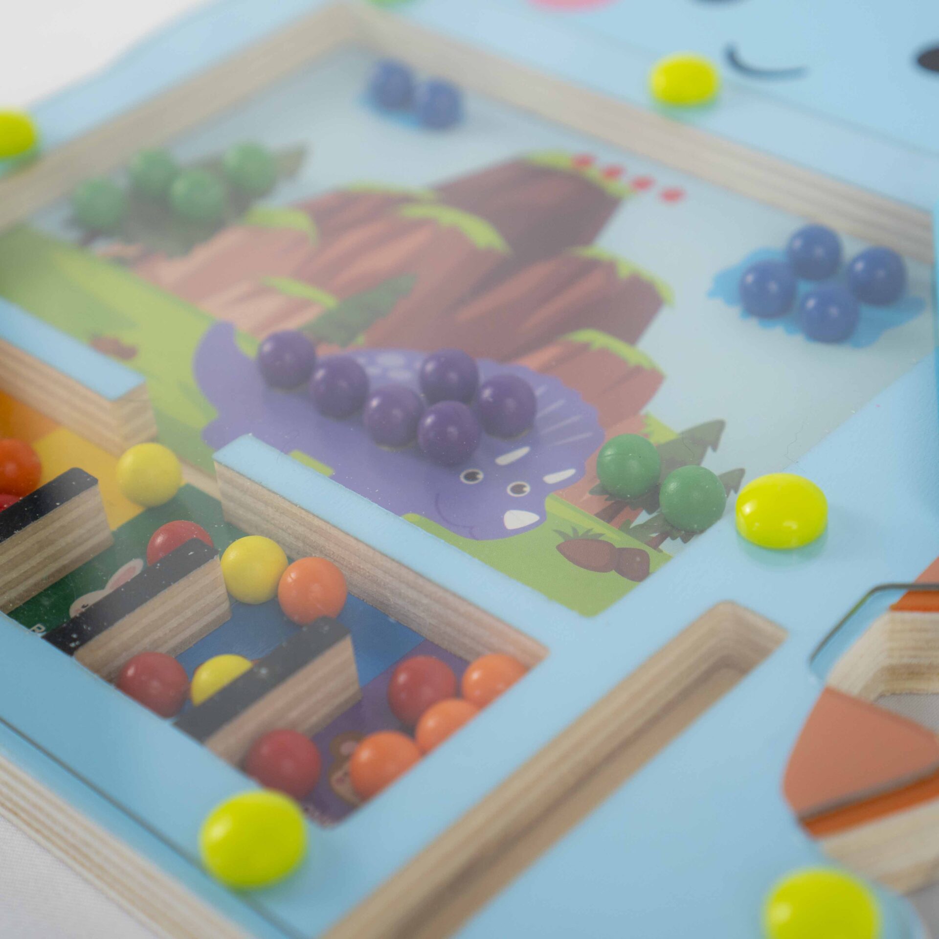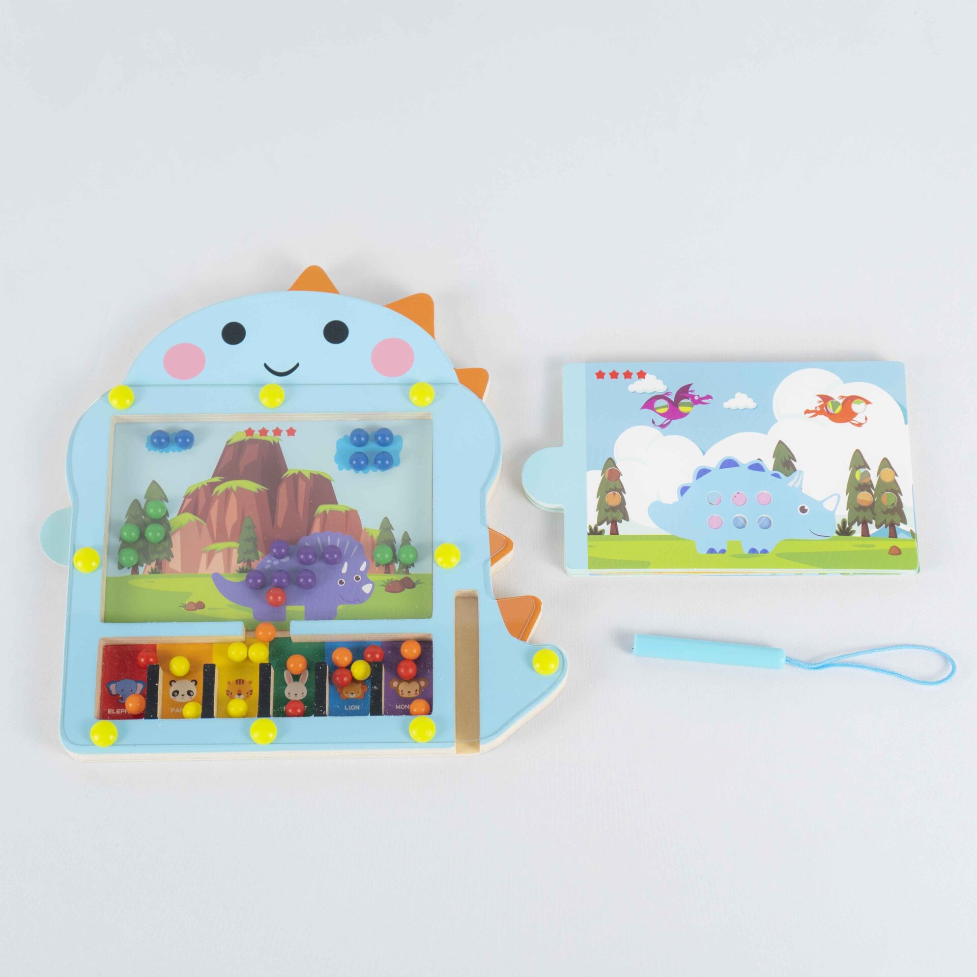 Guide the colourful beads through the dinosaur maze with the magnetic pen — great for fine motor skills.